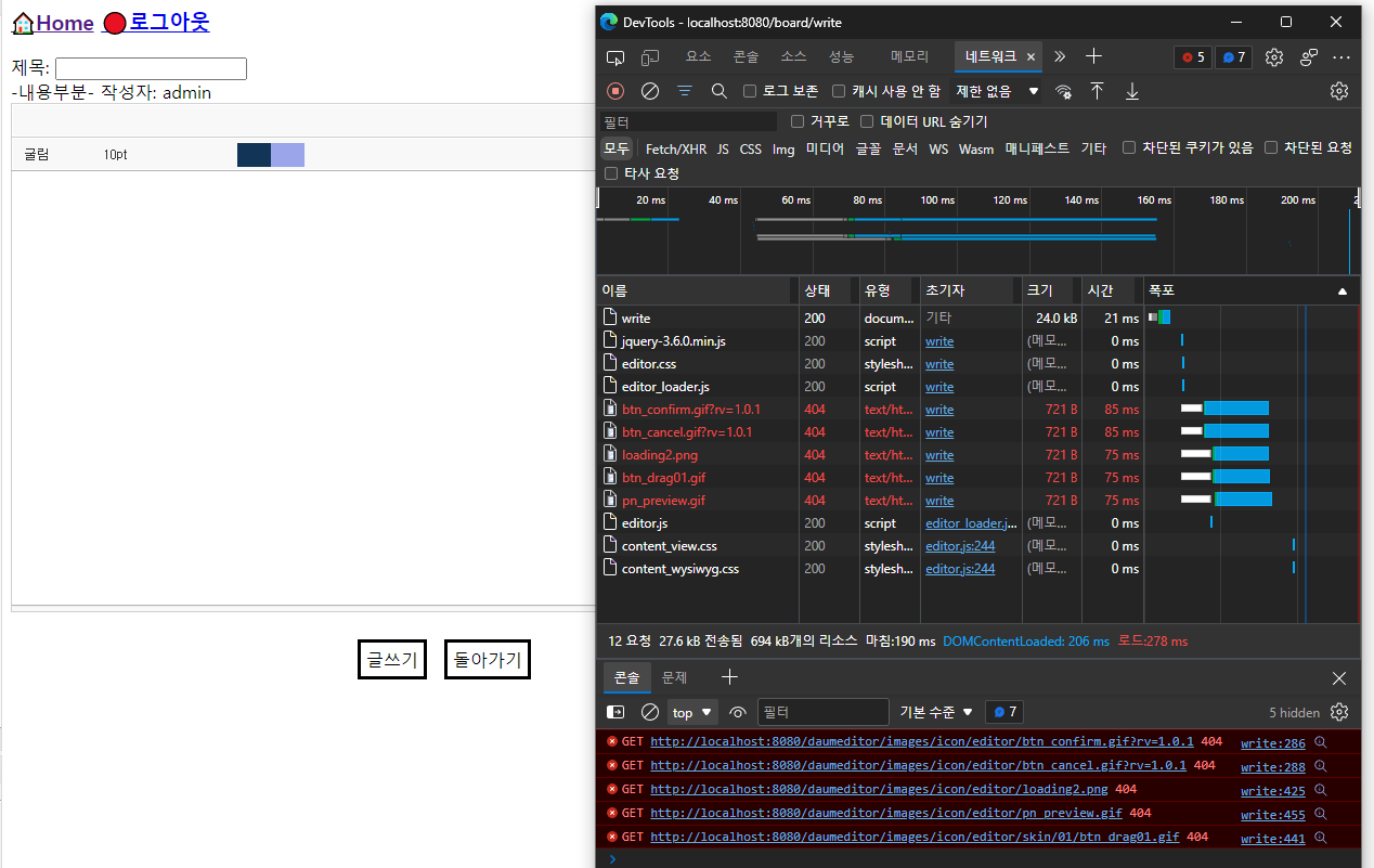 오늘 겪었던 일이다. 현재 개인공부로 스프링 프레임워크로 나만의 페이지를 제작하고 있다. 오늘은 오픈소스로 공개된 글 에디터를 사용해보기 위해 나는 다음에서 제작한 다음 에디터를 내 홈페이지 글쓰기 페이지에다가 입히려고 했다.